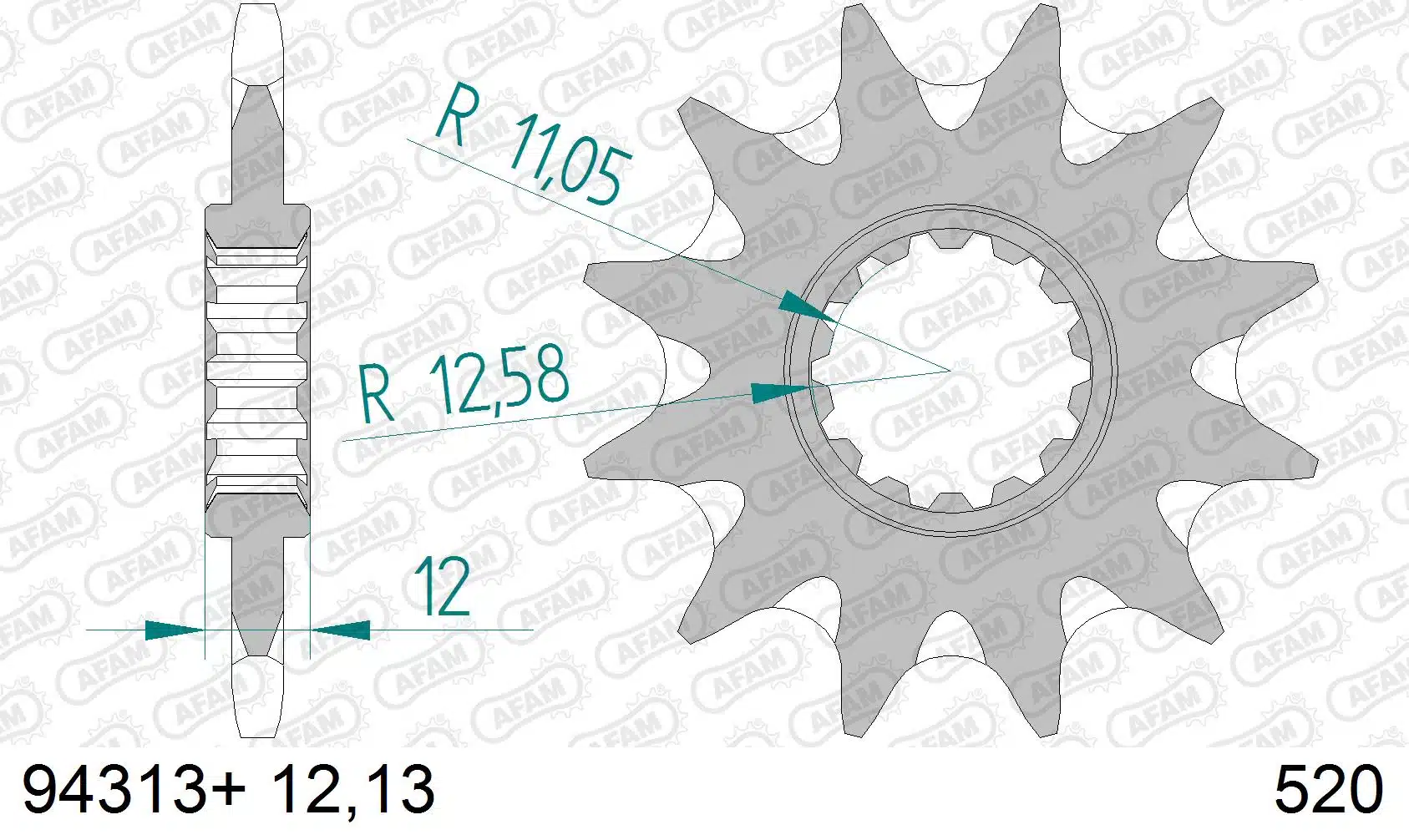 Dit tandwiel is te bestellen in 12 & 13