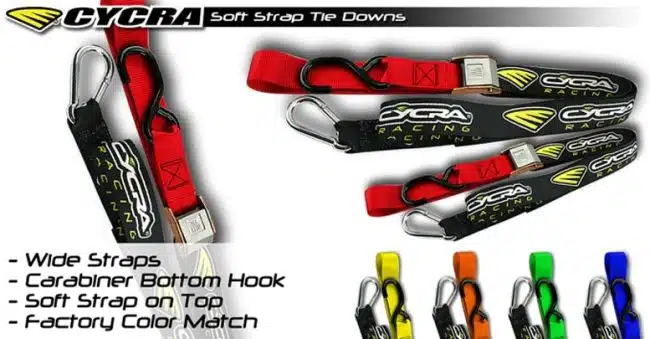Met een breedte van 1,5 inch zijn de Cycra Tie Downs duurzaam genoeg om uw motorfiets stabiel te houden tijdens het meest ruige transport waarmee u te maken krijgt. Brede nylon riem met industriële antislip-gesp, een grote haak (zacht haaksysteem) aan het ene uiteinde en een karabijnhaak aan het andere uiteinde.